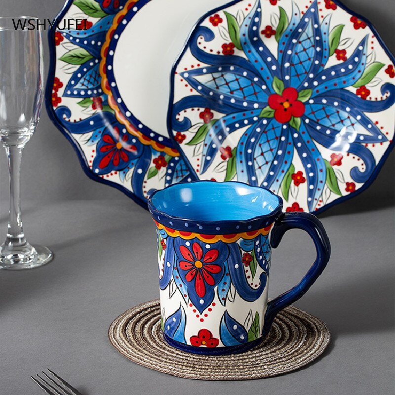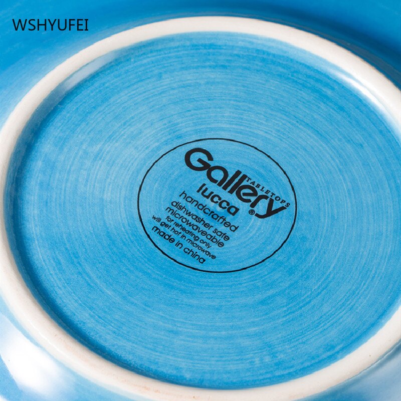 Creative Color Ceramic Plate Home Kitchen Restaurant Tableware Dinner Dish Cake Sushi Steak Western Food Plate Mug with Handle
