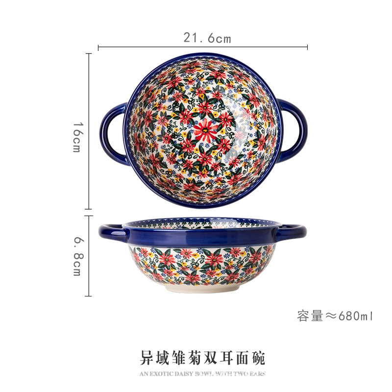 Retro Ceramic Plate Household Binaural Noodle Bowl Dinnerware Salad Bowl Fish Dishes 2l Soup Pot With Spoon Kitchen Tableware